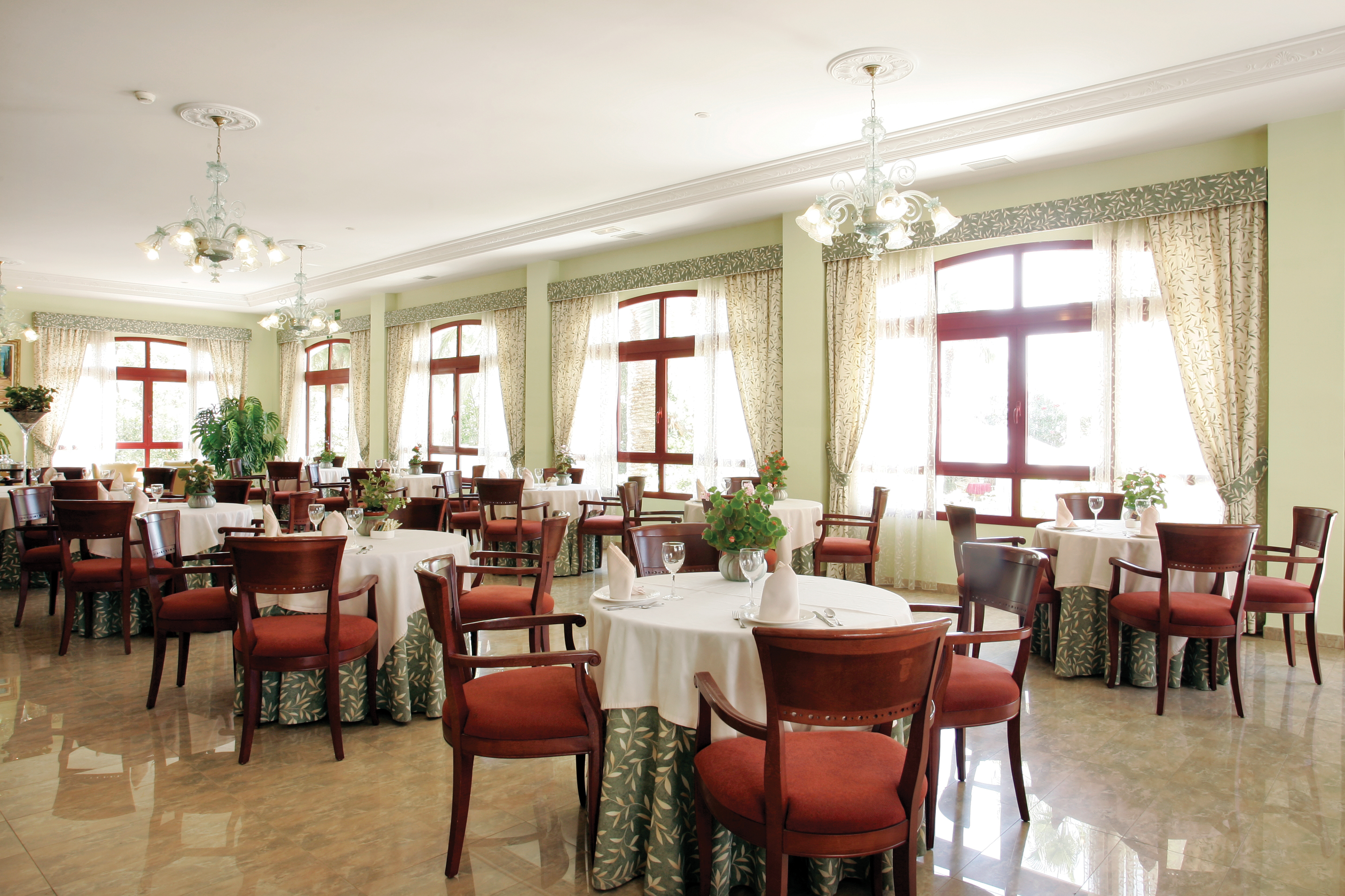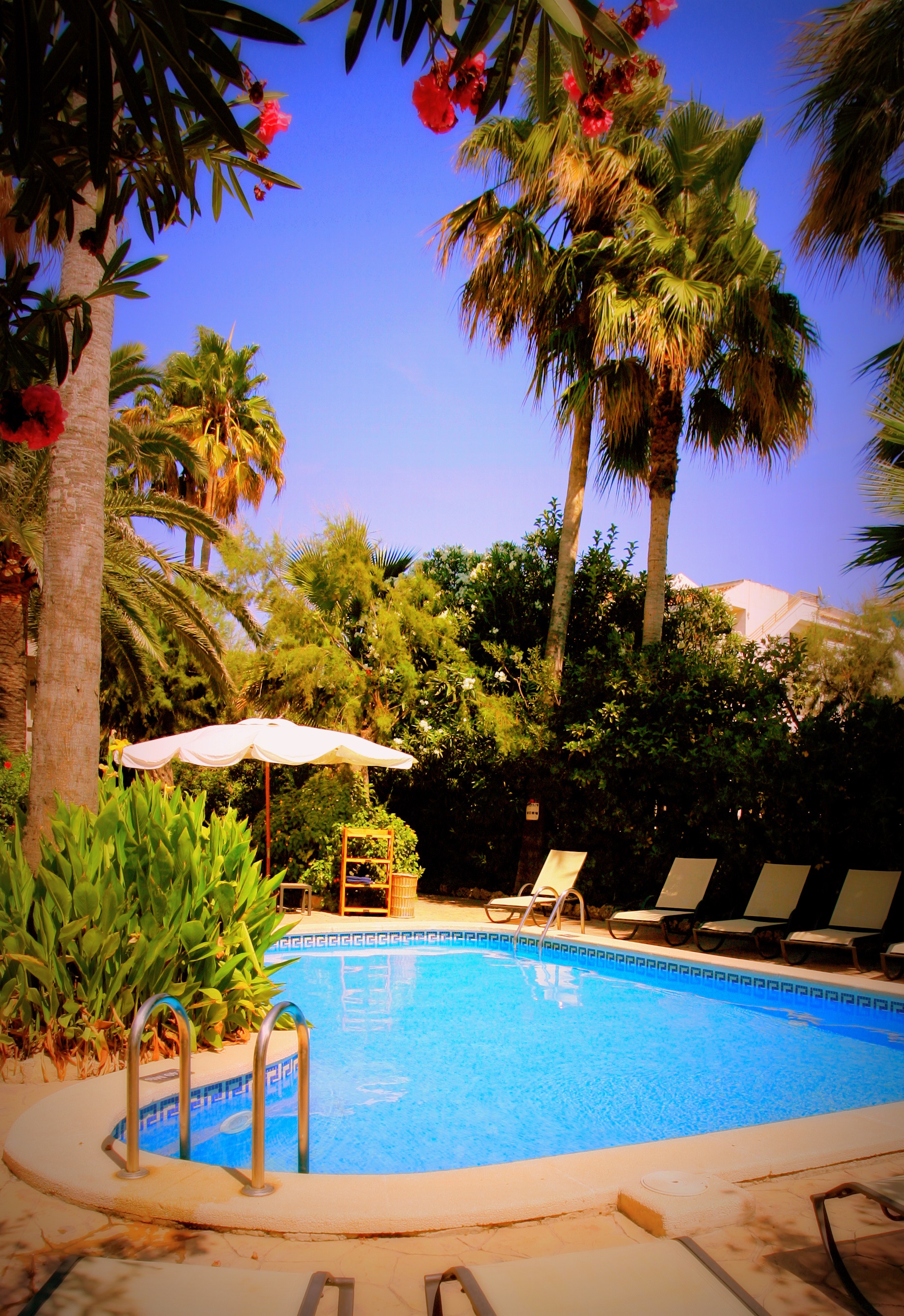 There is a distinctly Colonial feel to the interior with its stately white columns and potted palms. There are comfortable lounges with bar service. The hotel only serves breakfast as there are many places to eat nearby. A small private garden, containing many stately palm trees, is the only separation between the hotel and the beach. There is a bar, patio and extensive sun terraces, as well as an attractive swimming pool. Bicycles can be hired.