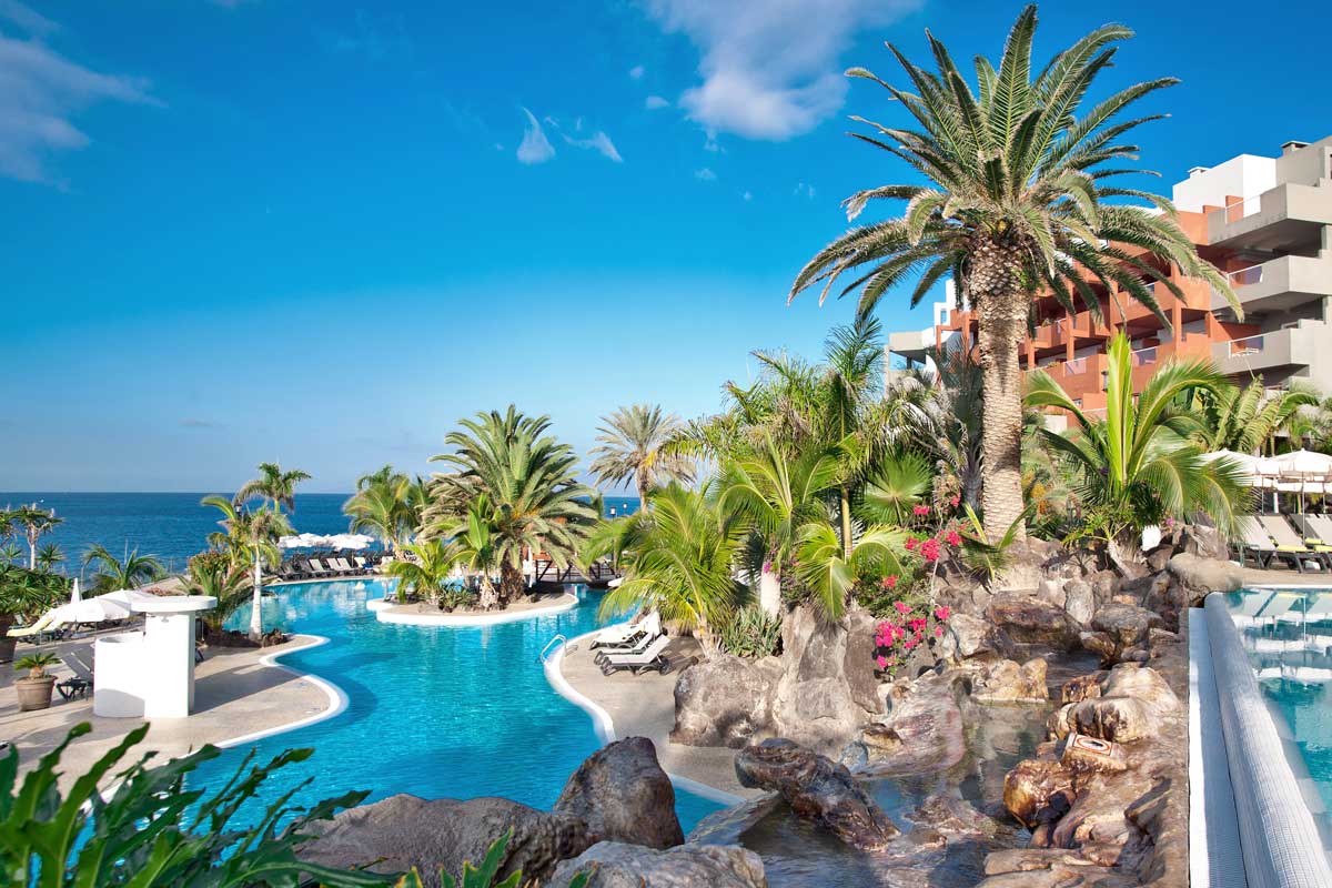 This excellent hotel complex has two large swimming pools, a Jacuzzi and solarium, two tennis courts, paddle tennis, putting green, archery, beach volleyball, giant chess and bowls. There is an excellent spa with a wide range of treatments and circuits, a gym and hair salon. Garoé Restaurant has an extensive international buffet and alternative dining can be found at Ahemón pool restaurant and bar, Burgos Spanish Restaurant and Verona Italian Restaurant. There are also two bars, one with evening entertainment. There is a Baby Club and a Mini-club for children, as well as a pool and mini-disco.