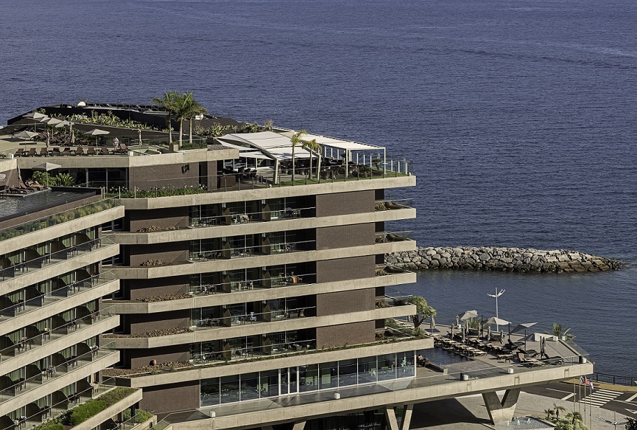 Overlooking the sea and close to Calheta marina, this is a modern design resort. It has three outdoor swimming pools, a squash court and children’s playroom. In addition, there is a luxury spa with treatment and massage rooms, a sauna, Turkish bath, jacuzzi, ice fountain, sensorial showers, halotherapy room, relaxation room and heated indoor swimming pool. There is also a gym.